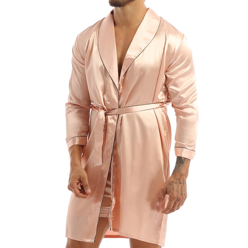 Men's Pajamas Set Soft Satin Homewear Ice Silk Bathrobes Sleepwear Nightwear