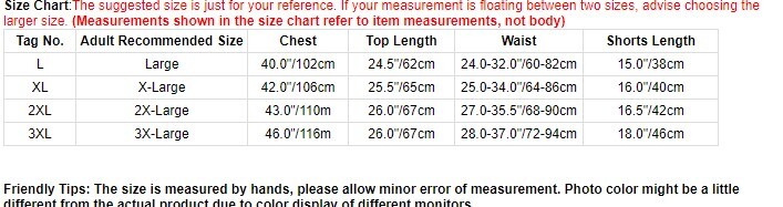 Tag No. Recommended Size Tops Length Chest Shoulder Sleeve Length Shorts Waist Shorts Length Hip